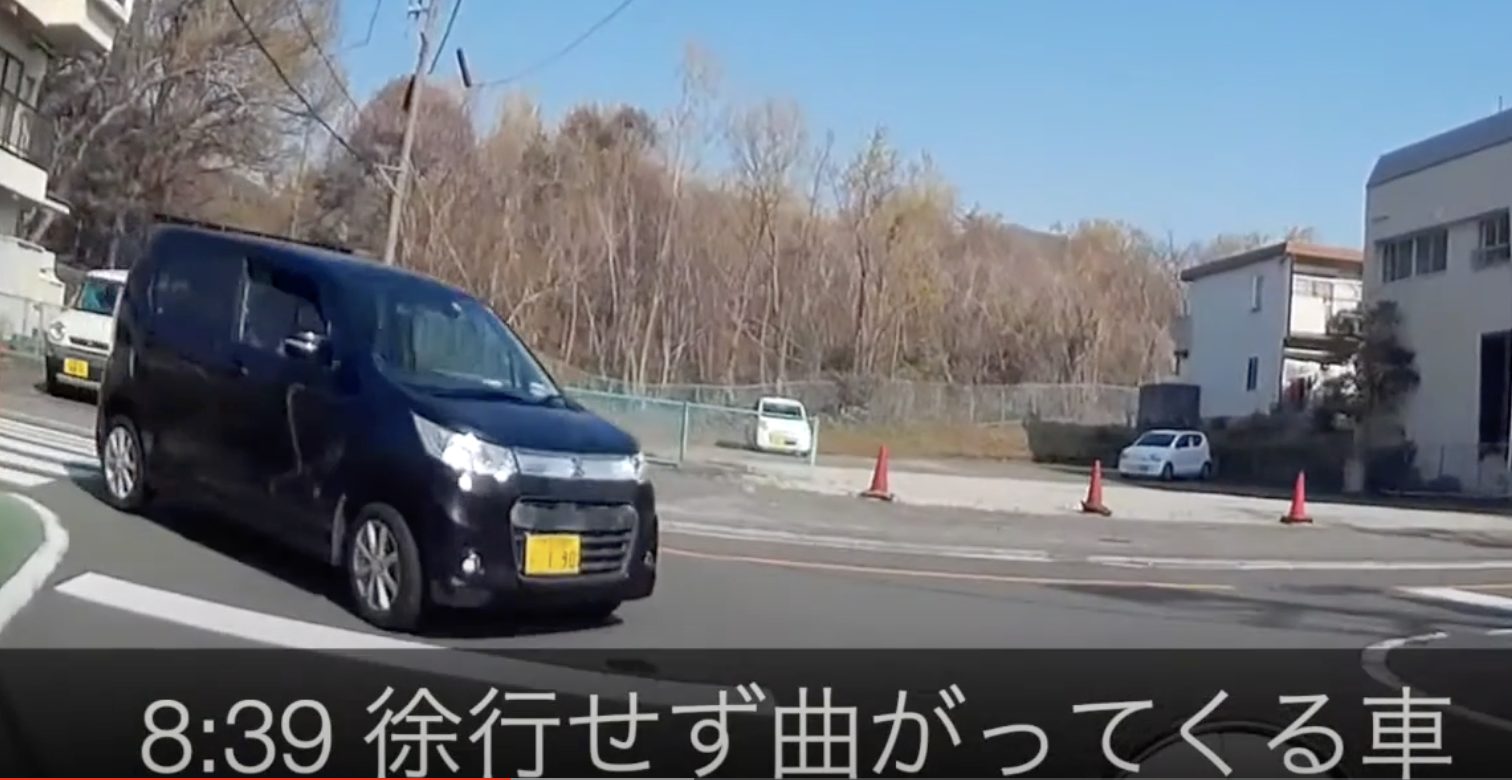 1:24 徐行せずに曲がってくる車。
