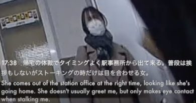 0:59 女性がカメラを意識して左ばかり見ている。