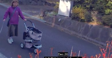 1:14 カメラを意識して歩く場所を変える女。