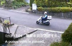 0:05 警察車両が現れる。