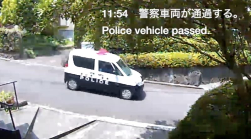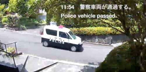 0:37 警察車両が通過する。