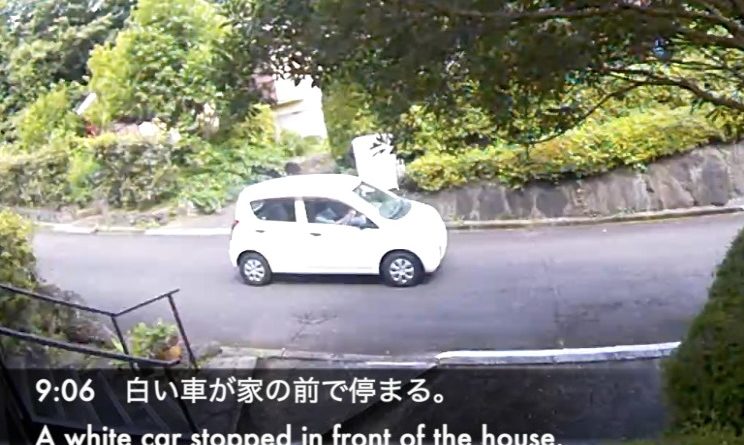 0:03 白い車が家の前で停まる。