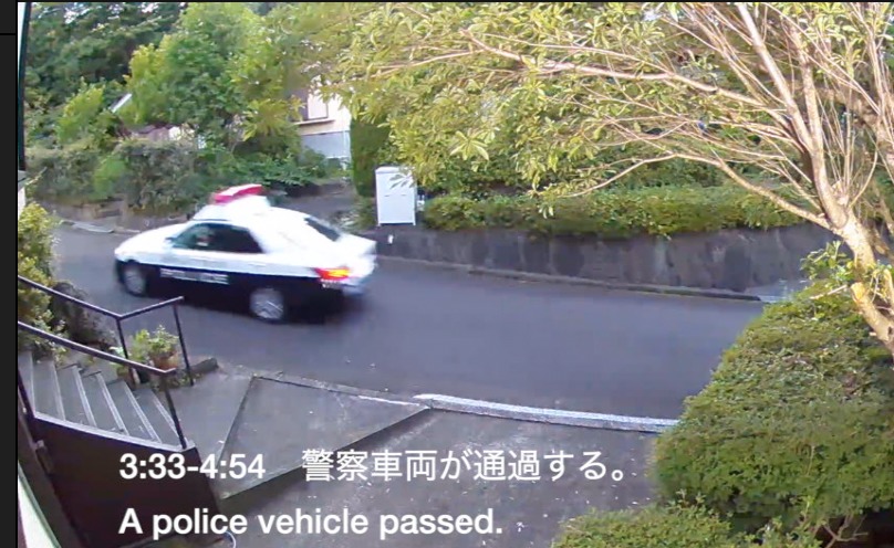0:08 警察車両が通過する。