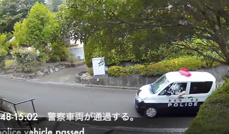0:04 警察車両が通過する。