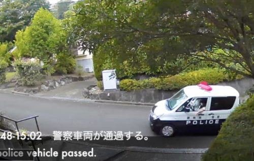 0:11 警察車両が通過する。