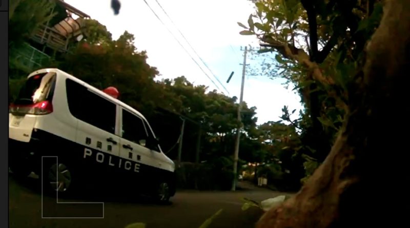 0:26 警察車両が通過する。