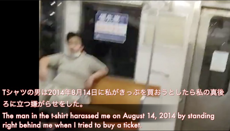 * Tシャツの男は2014年8月14日に私がきっぷを買おうとしたら私の真後ろに立つ嫌がらせをした。