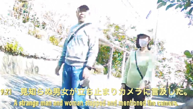 * 見知らぬ男女が立ち止まりカメラに言及した。