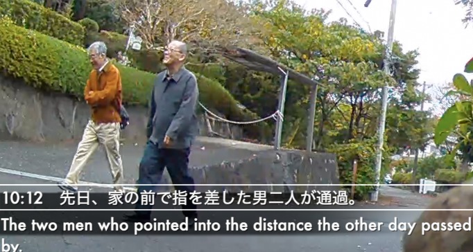 * 先日、家の前で指を差した男二人が通過。