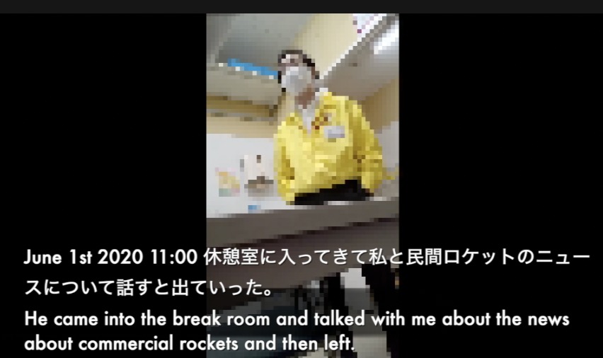 June 1st 2020 11:00 コミュニティ副店長Fが休憩室に入ってきて私と民間ロケットのニュースについて話すと出ていった。