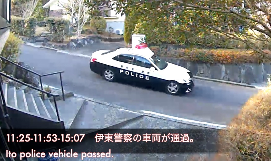 11:25-11:53-15:07 伊東警察の車両が通過。