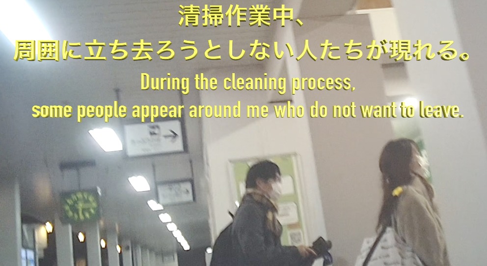 * 清掃作業中、私の周りになかなか立ち去ろうとしない人たちが現れます。