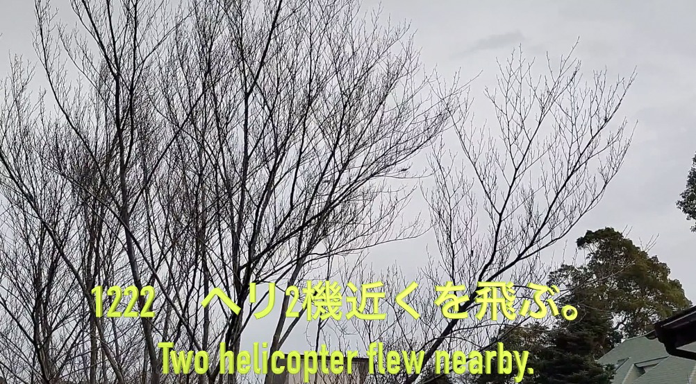 1222 ヘリ2機近くを飛ぶ。
