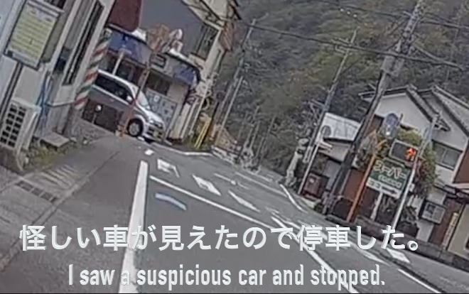 * 怪しい車が見えたので停車した。
