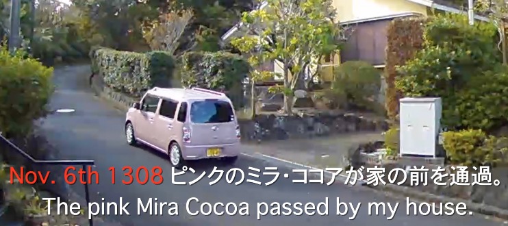 Nov. 6th 1308 ピンクのミラ・ココアが家の前を通過。