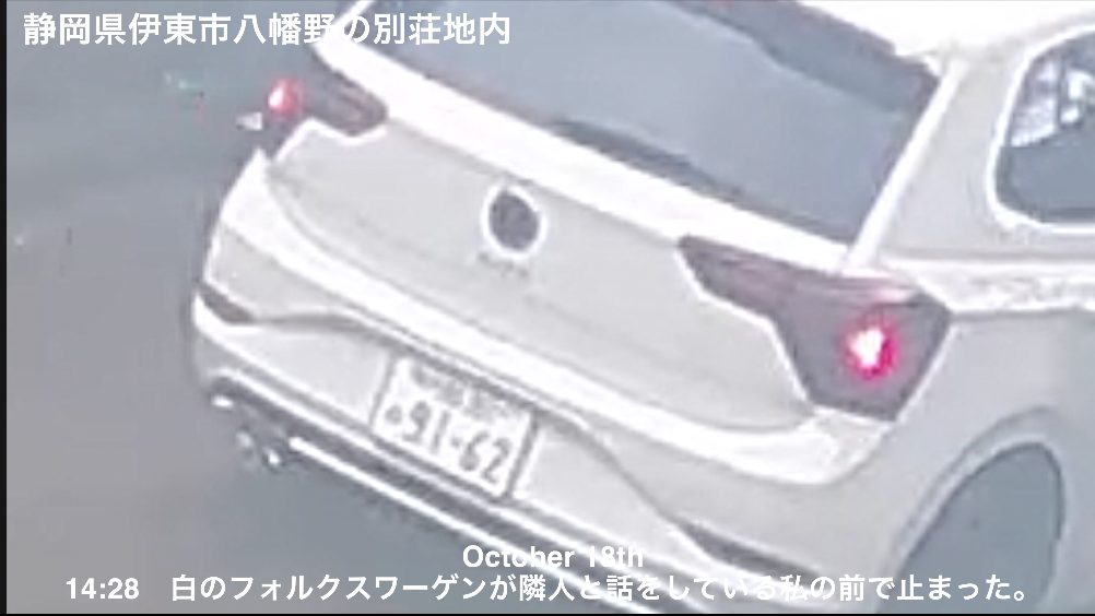 映像写真 本日の集団ストーカー 2025_1018 Short Ver. 2025-10-18 Nono October 18th 14:28 白のフォルクスワーゲンが隣人と話をしている私の前で止まった。 沼津301ぬ9162 (Visited 7 times, 1 visits today)
