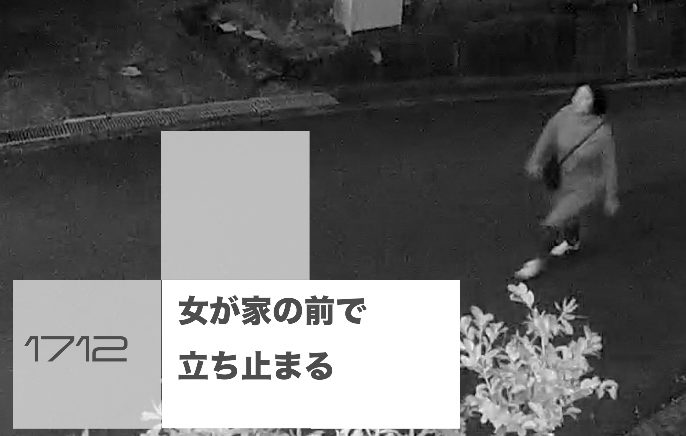 1712 女が家の前で立ち止まる
