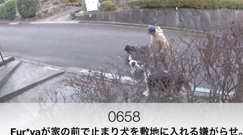 0658 Fur*yaが家の前で止まり犬を敷地に入れる嫌がらせ。