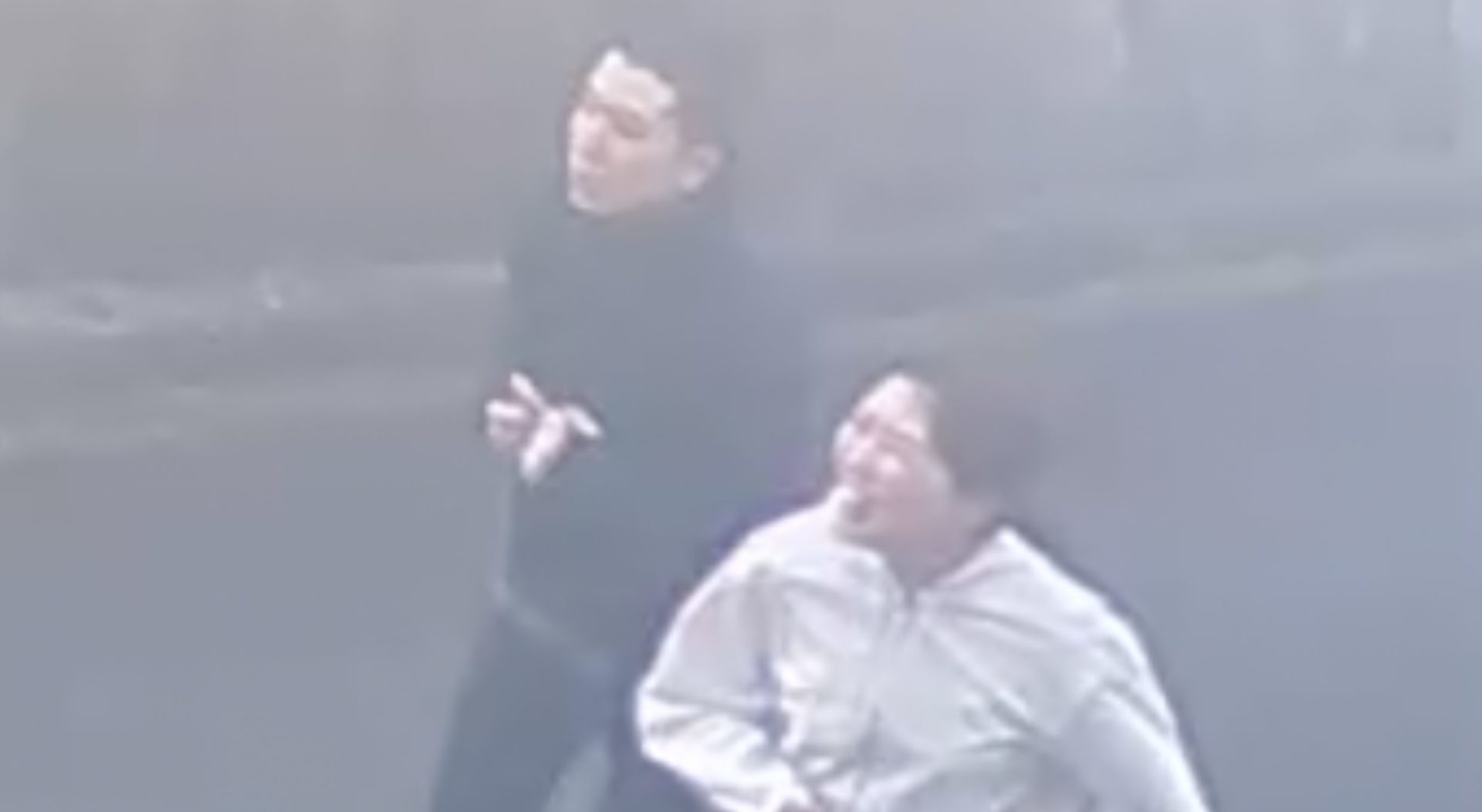 0737 男女がカメラの前で話をして歩き出す。