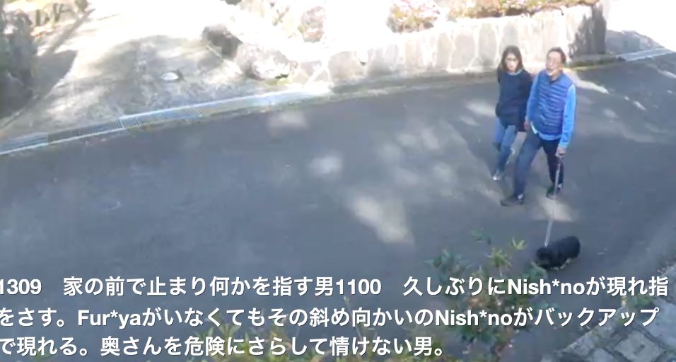 1100 久しぶりにNish*noが現れ指をさす。Fur*yaがいなくてもその斜め向かいのNish*noがバックアップで現れる。奥さんを危険にさらして情けない男。